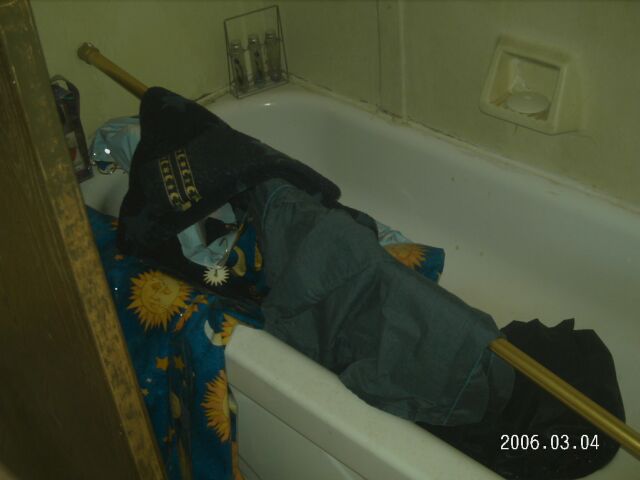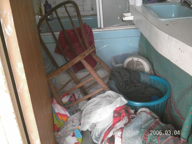 Bathroom 2 Filename: 008-IMG_0051.jpg ID: 28 Shower curtain rods ripped down for no apparent reason other then to show the hate against dan&mary's relgious sactuary. (640x480) (31521 Bytes) [8709 Hits]