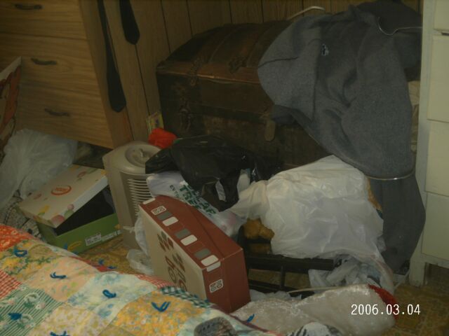 dan&mary's bedroom Filename: 008-IMG_0054.jpg ID: 29 Not only were pictures and posters of dan&mary's prime deity ripped from the wall leaving just the corners, family heirlooms from the mid 1800's in the humpback trunk were also destroyed in an act of hate. (640x480) (42513 Bytes) [9106 Hits]