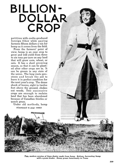 In February 1938 Popular Mechanics ran an article declaring new innovations with a Hemp Decortating Machine would once again make hemp competitive calling it the "New Billion Dollar Crop", detailing it's ancient history, and relatively obscure usefulness which few today recall.